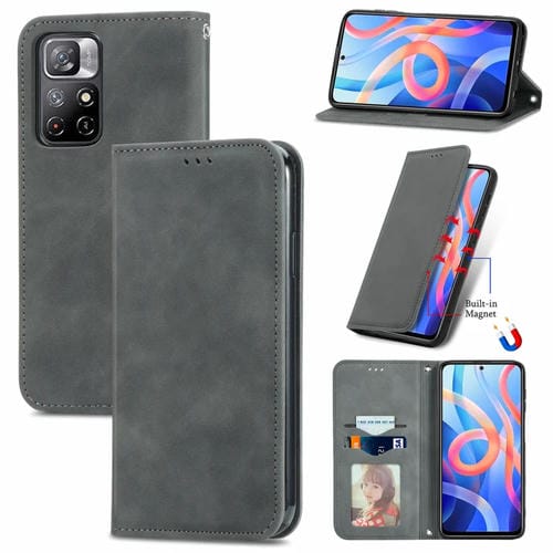 Para Xiaomi Redmi Note 11 Siente Retro Siente Magnético Horizontal Flip Funda (Gray)