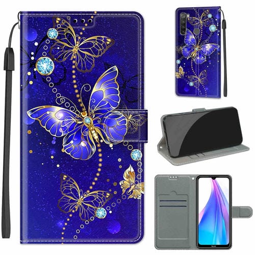 Para Xiaomi Redmi Note 8T Dibujo de Color de Voltaje Dibujo Magnético Cierre de Cuero Horizontal Flip Pu Funda con Soporte y Ranuras para Tarjetas (C11 Blue Golden Cadena Mariposas)