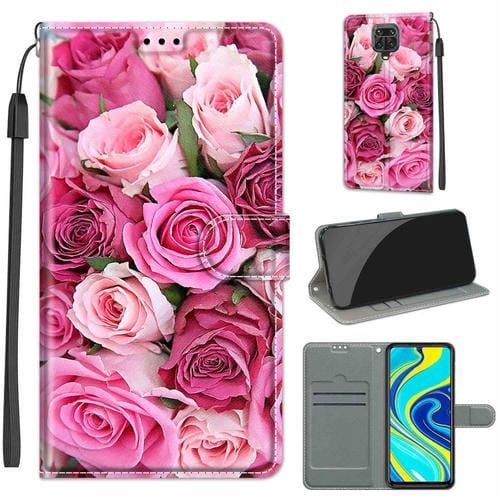 Para Xiaomi Redmi Note 9S / 9 Pro Dibujo de Color de Voltaje Piernos Magnéticos Cierre de Cuero Horizontal Flip Pu Funda con Soporte y Ranuras de Tarjetas (C17 Hoja Verde Rosa Rosa)