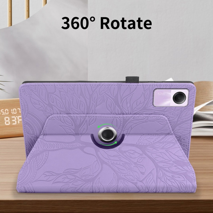 Para Xiaomi Redmi Pad Se Tree Life Funda para Tableta Inteligente de Cuero con Rotación En Relieve (Púrpura)