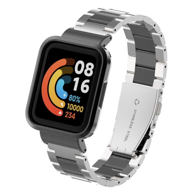 Para Xiaomi Redmi Watch 2 banda de reloj de metal de tres cuentas (plata + negro)