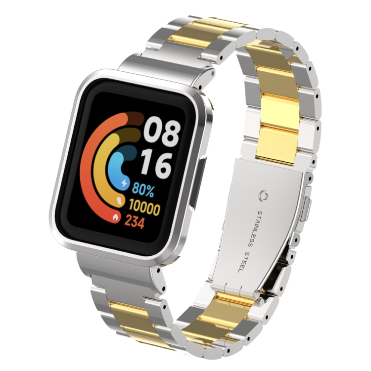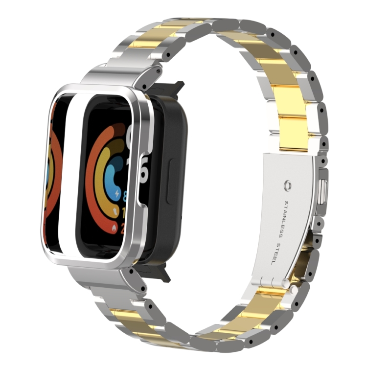 Para Xiaomi Redmi Watch 2 banda de reloj de metal de tres cuentas (plata + oro)