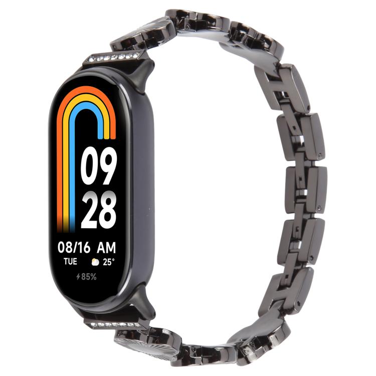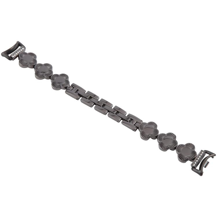 Para Xiaomi Smart Band 9/8 Pulsera de metal con diamantes y flores de cuatro pétalos (negra)