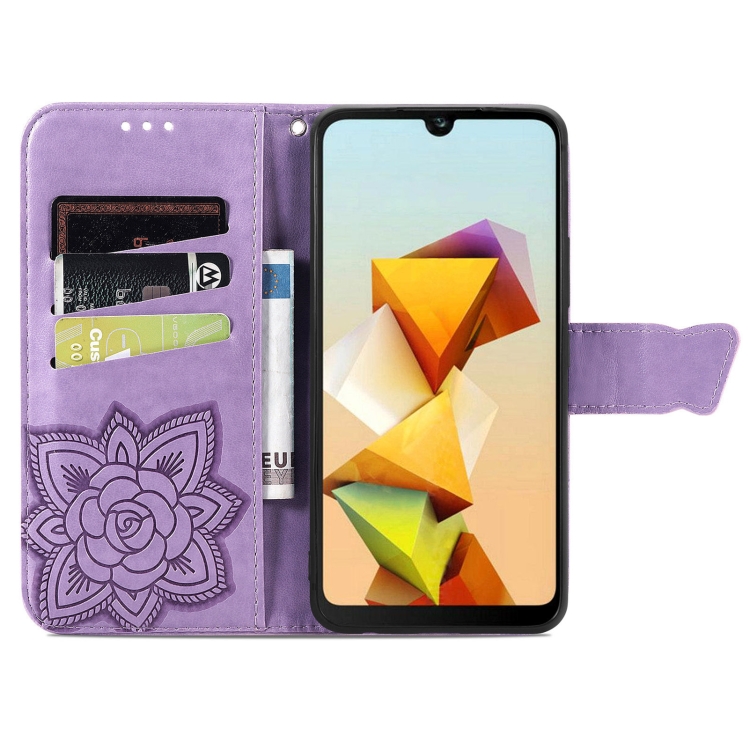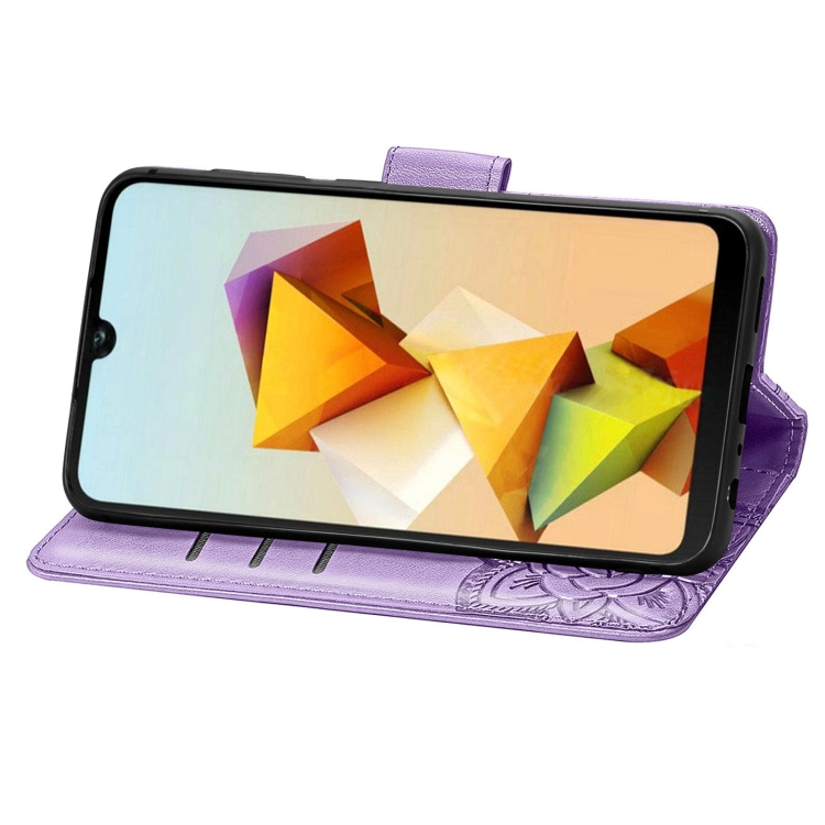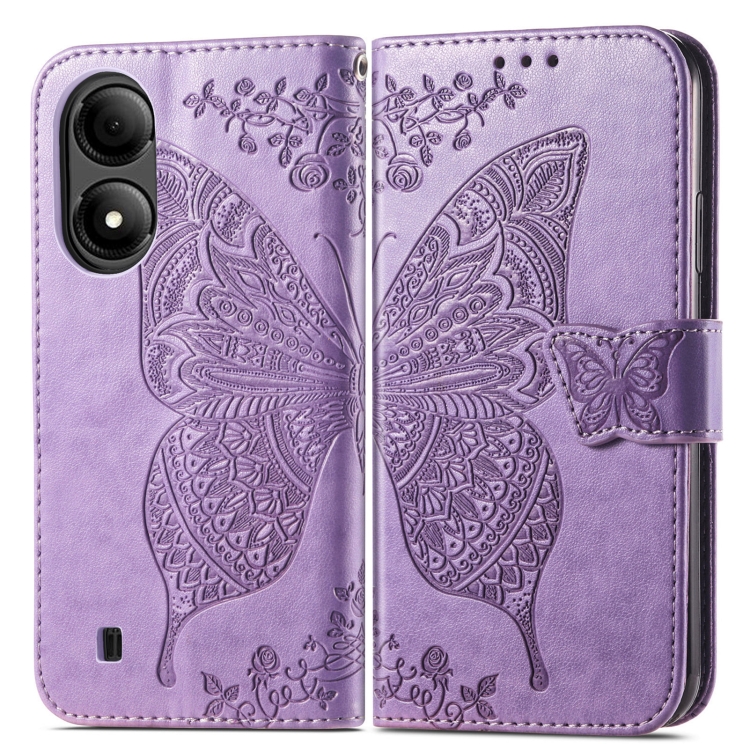 Funda para ZTE Blade A33S de Cuero con Relieve de Flor y Mariposa (Púrpura Claro)