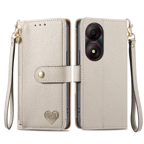 Funda de Cuero con Lanyard para ZTE Blade A34 Love Zipper (Gris)