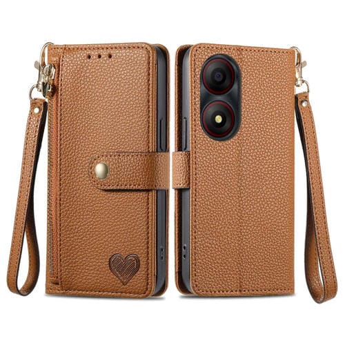 Funda de Cuero con Lanyard para ZTE Blade A34 Love Zipper (Marrón)