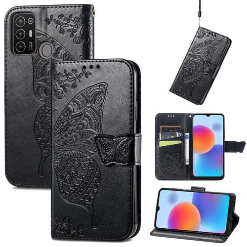 Funda de Cuero ZTE Blade A52 Butterfly Love Flower Caja de Teléfono en Relieve (Negro)