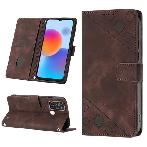 Estuche para ZTE Blade A52 de Cuero en Relieve con Tacto de Piel (Marrón)