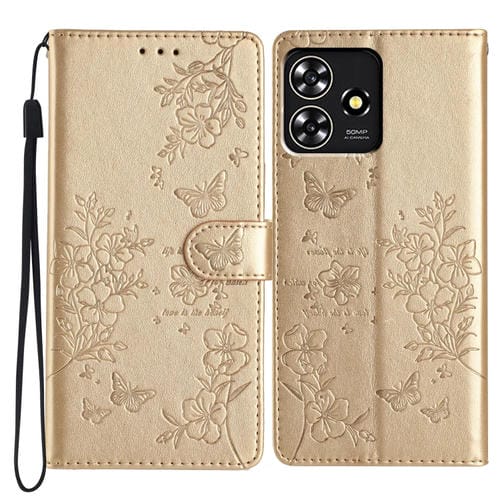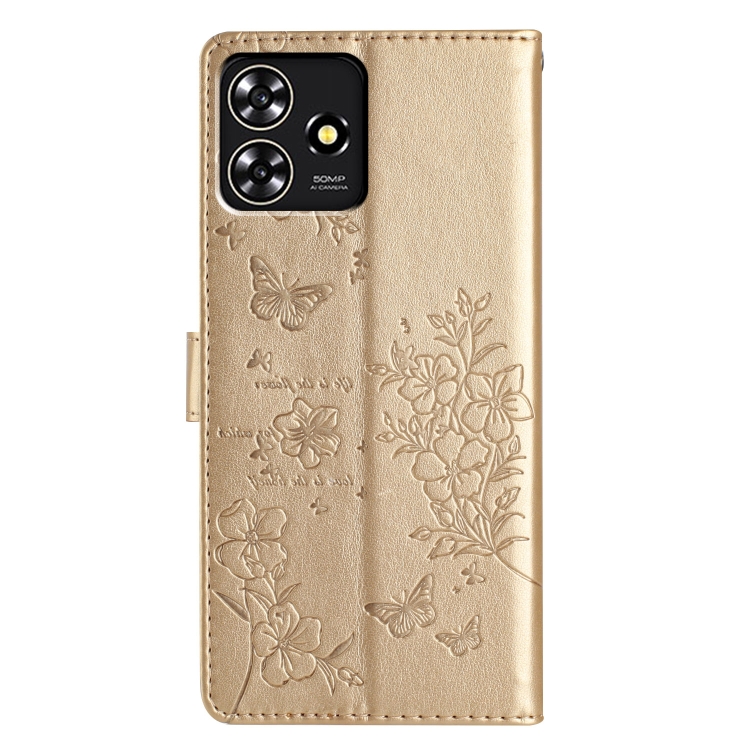 Funda para ZTE Blade A73 4G de Cuero con Relieve de Flor y Mariposa (Dorado)