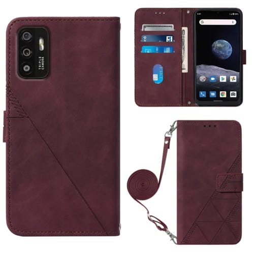 Funda de Cuero ZTE Zmax 11 Z6251 Crossbody 3D con Tapa En Relieve (Rojo Vino)