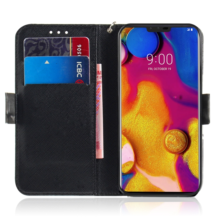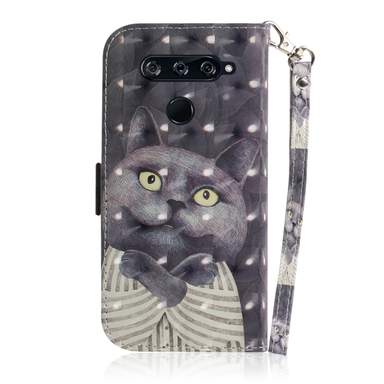 Funda de Cuero con Patrón 3D y Soporte para LG V40 Thinq (Hug Cat)
