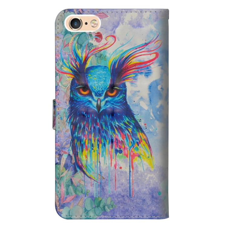 Funda para iPhone 6 / 6S TPU + PU con Tapa Horizontal, Soporte, Ranuras para Tarjetas y Billetera (Búho de Acuarela)