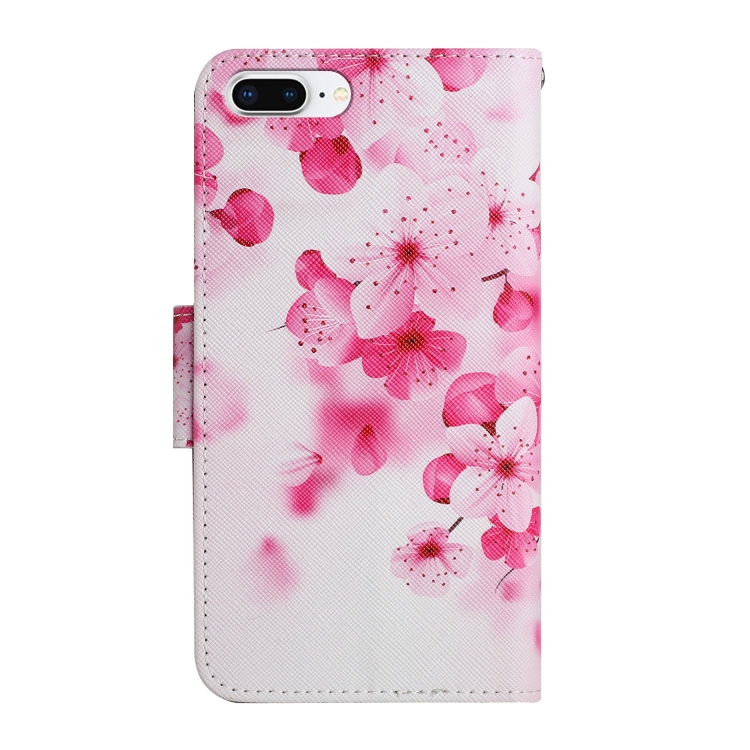 Funda de Cuero Patrón Pintado para iPhone 8 Plus y 7 Plus con Soporte y Ranura (Flor Roja)