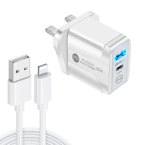 Cargador Pd25W USB-C + QC3.0 Doble Puerto USB con Cable USB a 8 Pin (Blanco)