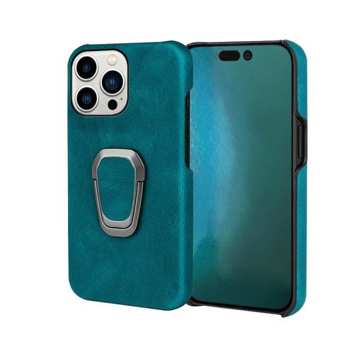 Funda Pu Phone Case con Ring Holder para iPhone 14 Pro (Cian)