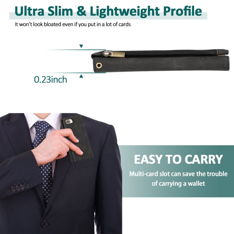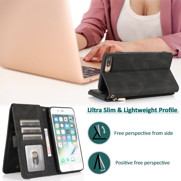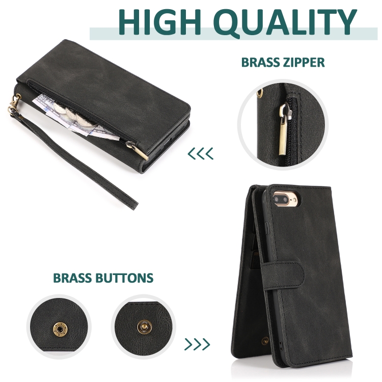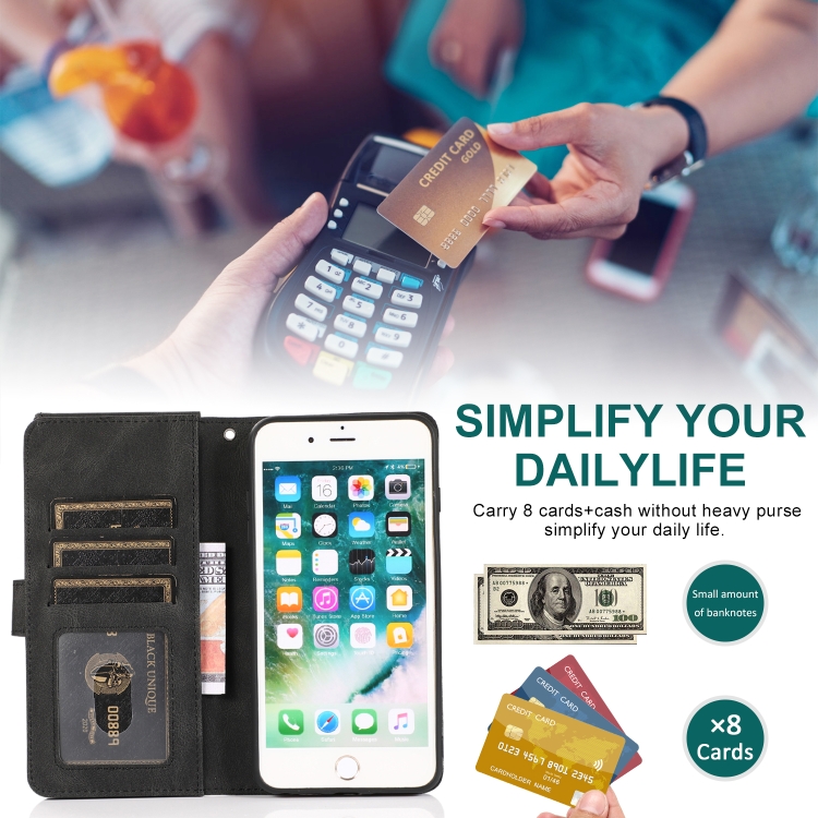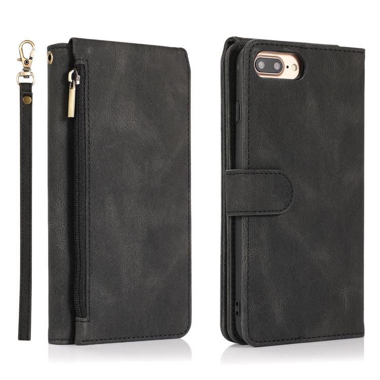 Funda de Cuero Skin-Feel Crazy Horse Texture Zipper Wallet Bag para iPhone 6 Plus con Tapa Horizontal, Soporte, Ranuras y Cordón (Negro)
