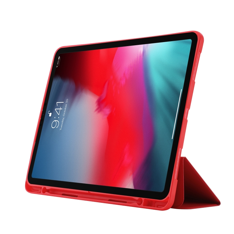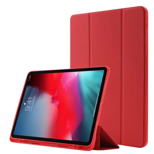 Funda Tablet Skin Feel Pen Holder Tri-Fold para iPad Pro 12.9 (2022 / 2021 / 2020 / 2018) (Rojo)