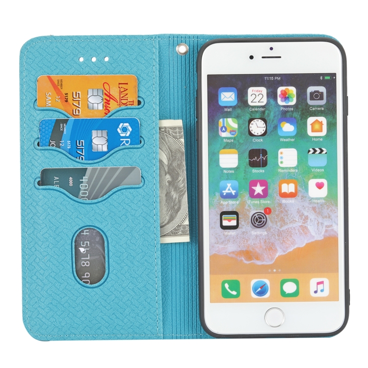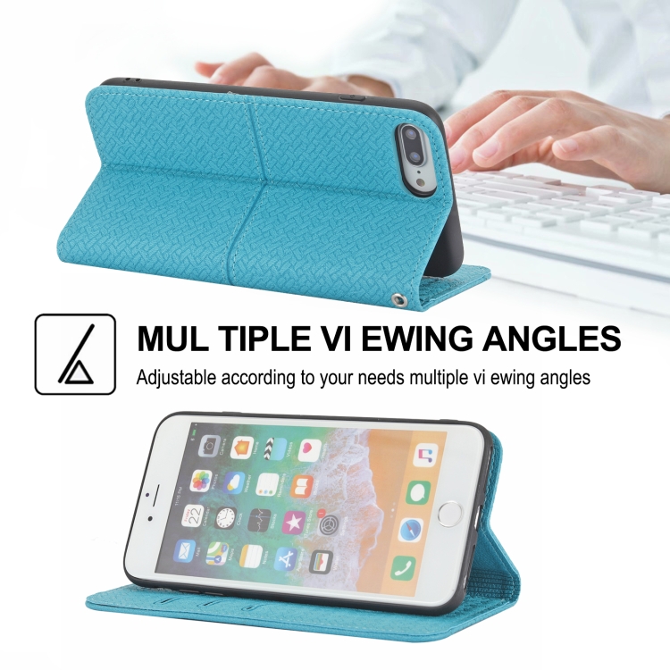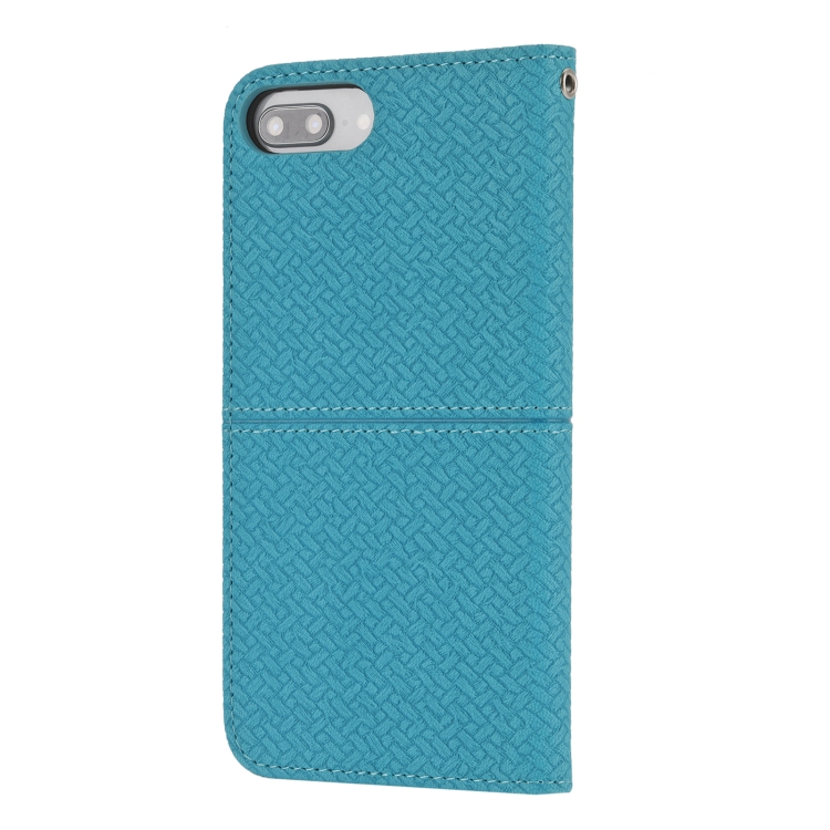 Funda Cuero PU Textura Tejida Costura Magnética Horizontal Flip con Soporte y Ranuras para Tarjetas y Billetera para iPhone 8 Plus / 7 Plus (Azul)