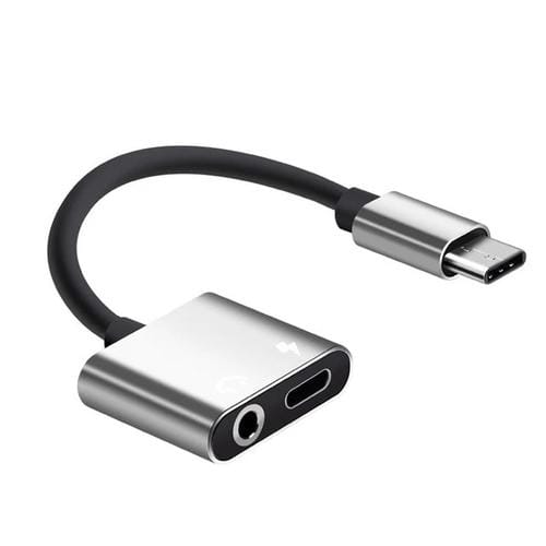 - 1x Adaptador USB-C a 3,5 mm Aux + USB-C para Auriculares y Cargador (Plateado)