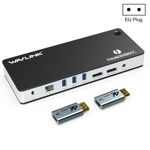 - 1x Estación de acoplamiento Thunderbolt 3 Wavlink Utd21H 60W con Carga host, Pantalla dual 4K y 11 Puertos (Enchufe de la UE)