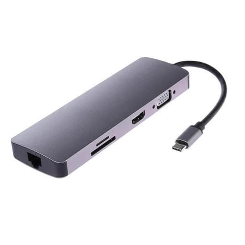 Adaptador Convertidor Ws-11 8 en 1 Tipo C a HDMI, VGA, SD, TF, RJ45, PD y 2 USB 3.0 Hub