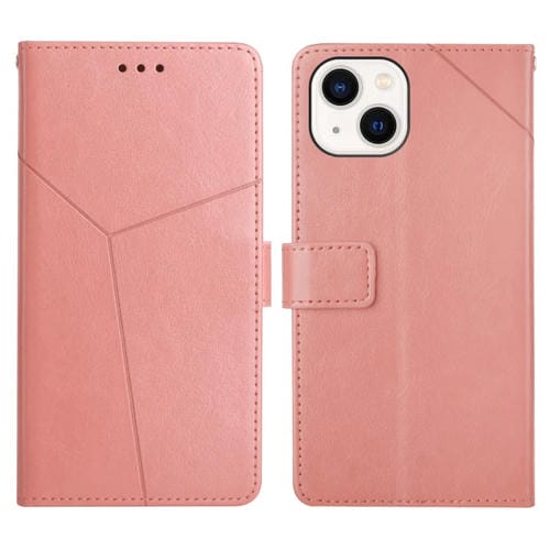 Caja de teléfono cuero Y Costura tapa horizontal soporte ranuras tarjetas marco billetera fotografías iPhone 13 Mini (Oro Rosa)