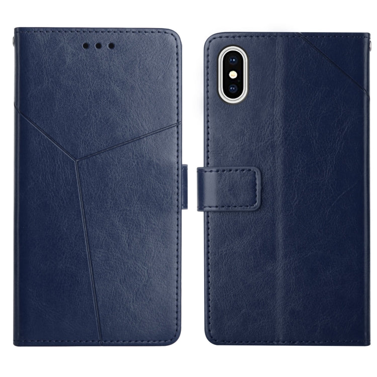 Funda de teléfono Y Costura iPhone Xs Max tapa horizontal con soporte y tarjetero (Azul)