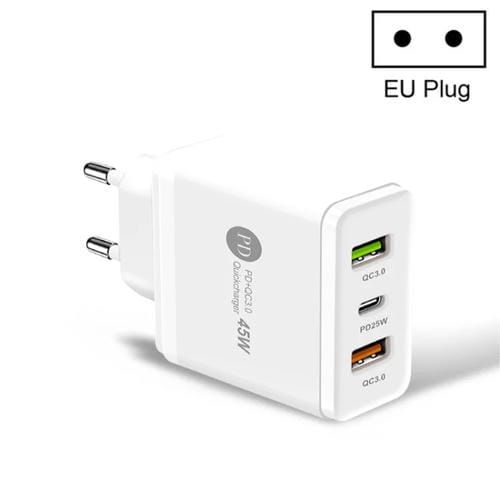 Cargador Rápido Múltiple USB 45W Pd3.0 + 2x Qc3.0 Enchufe UE (Blanco)