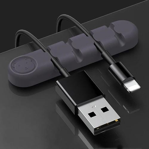 Organizador de Cables 5 PCs Oso Silicone 4 Agujeros Desktop (Lavender Grey)