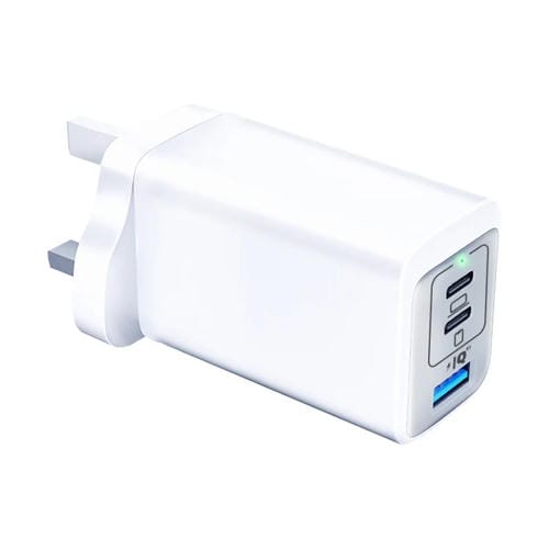 Cargador 65W Dual PD USB-C + USB Tipo-C 3 Puertos Carga Rápida (Blanco) UK