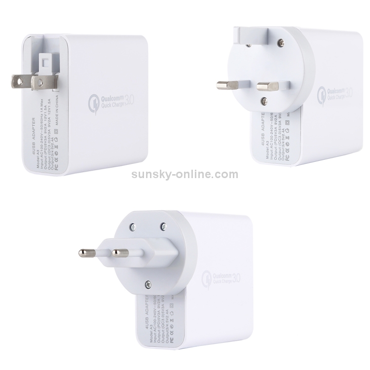 Juego de cargador de viaje A3 Pd 18W Usb-C Type-C + Qc3.0 Usb con interfaz Usb dual (EE. UU. / UE / Reino Unido)