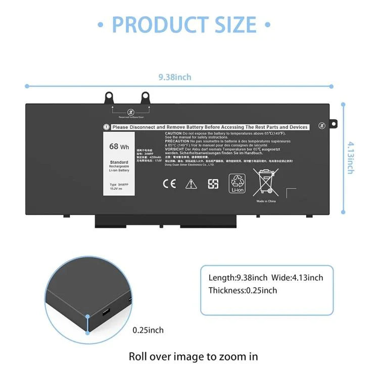 4. Capacidad de la batería: 68 Wh/4250 mAh
