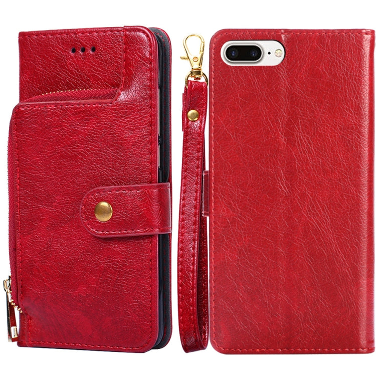 Funda de Cuero Flip Horizontal iPhone 7 Plus Bolsa Cremallera PU TPU Soporte Ranura Tarjeta Billetera (Rojo)