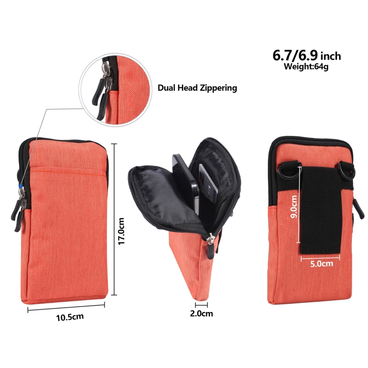 Bolso Diagonal de Cintura Universal para Teléfono Móvil 6.7-6.9 Pulgadas a Prueba de Agua (Naranja)