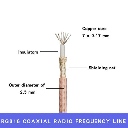 • Material de Cable coaxial RG316 con aislamiento de teflón retardante de llama