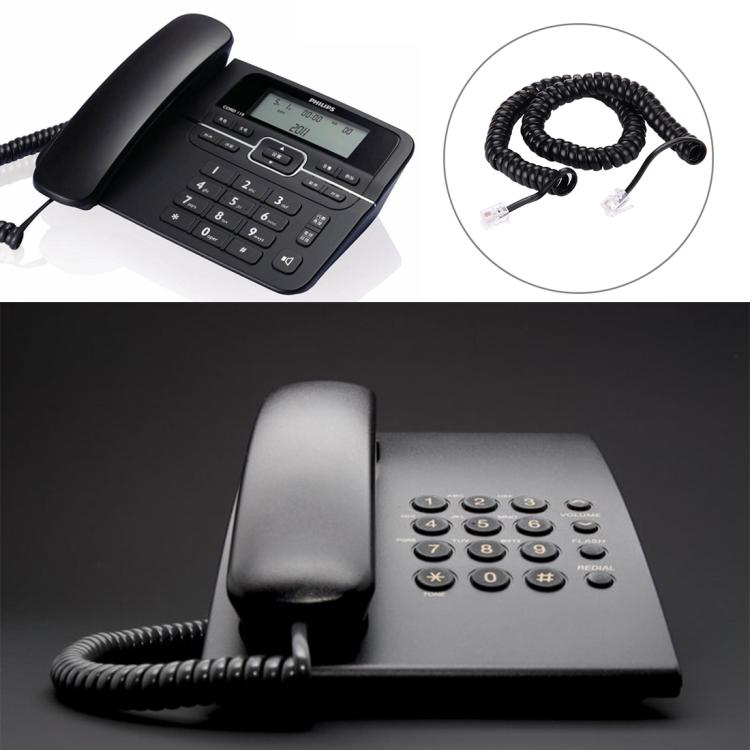 Cable de extensión telefónica RJ11 de 4 núcleos, macho a macho, con resorte, longitud de 5 m (negro)