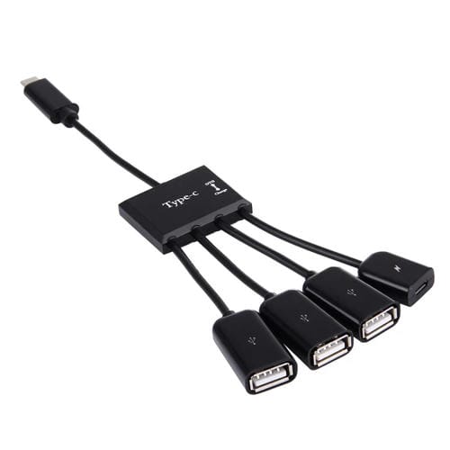 - 1x Cable Portátil 4 en 1 USB-C / Type-C a 3 Puertos USB 2.0 OTG Hub con fuente de Alimentación Micro USB