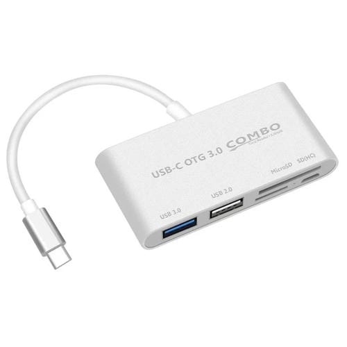 - 1x Combo T-693 5 en 1 USB-C Type-C a SD TF Micro SD Slot USB 3.0 USB 2.0 OTG Hub Lector de Tarjetas (Plata)