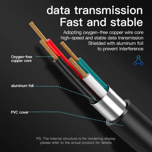 - Transmisión de datos estable y protegida contra interferencias gracias al núcleo de cobre y lámina de aluminio
