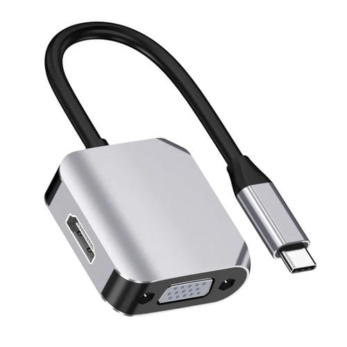 • 1x Convertidor Adaptador HW-6002 2 en 1 Tipo C USB-C a HDMI y VGA (Gris)