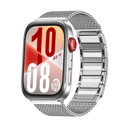 Correa de acero inoxidable con tejido magnético en forma de I para Huawei Watch Fit4/Fit4 Pro/Fit3 (plateada)