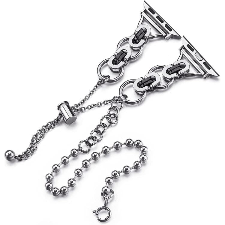 Correa de aleación de zinc con cadena de cuentas de doble círculo para Apple Watch de 42 mm, 41 mm, 40 mm y 38 mm (negro)