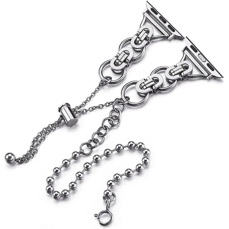 Correa de aleación de zinc con cadena de cuentas de doble círculo para Apple Watch de 46 mm, 49 mm, 45 mm y 44 mm (plateada)