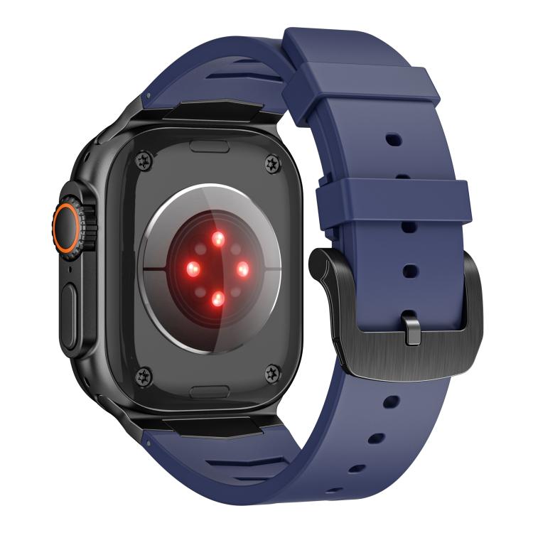 Correa de caucho fluorado con hebilla de acero inoxidable para Apple Watch Ultra/Ultra 2 de 49 mm (azul y negro)