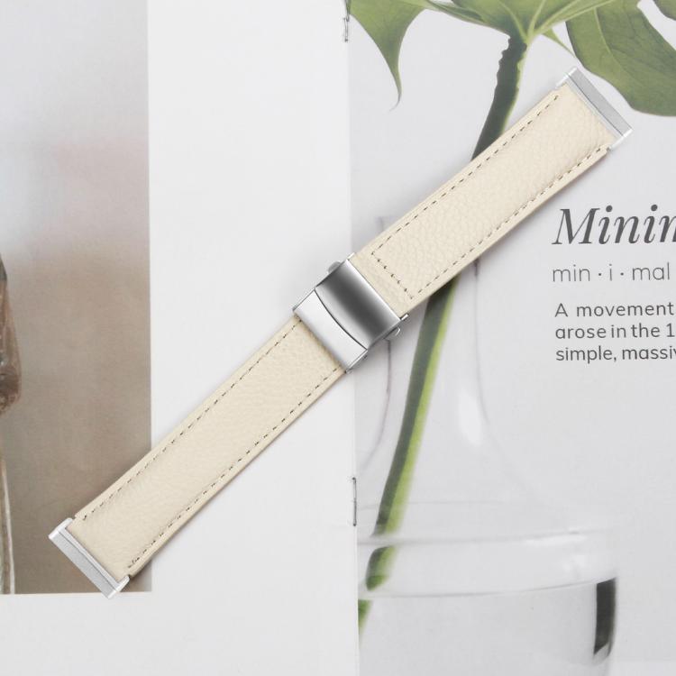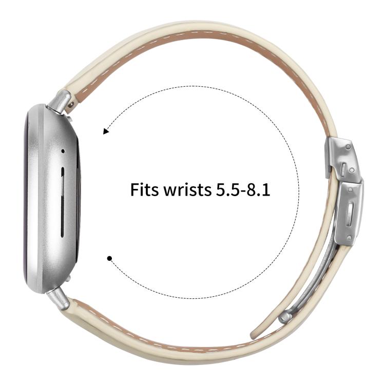 Correa de cuero con hebilla trasera de tortuga plateada con textura de lichi para Fitbit Versa 3/4 (blanco cremoso)