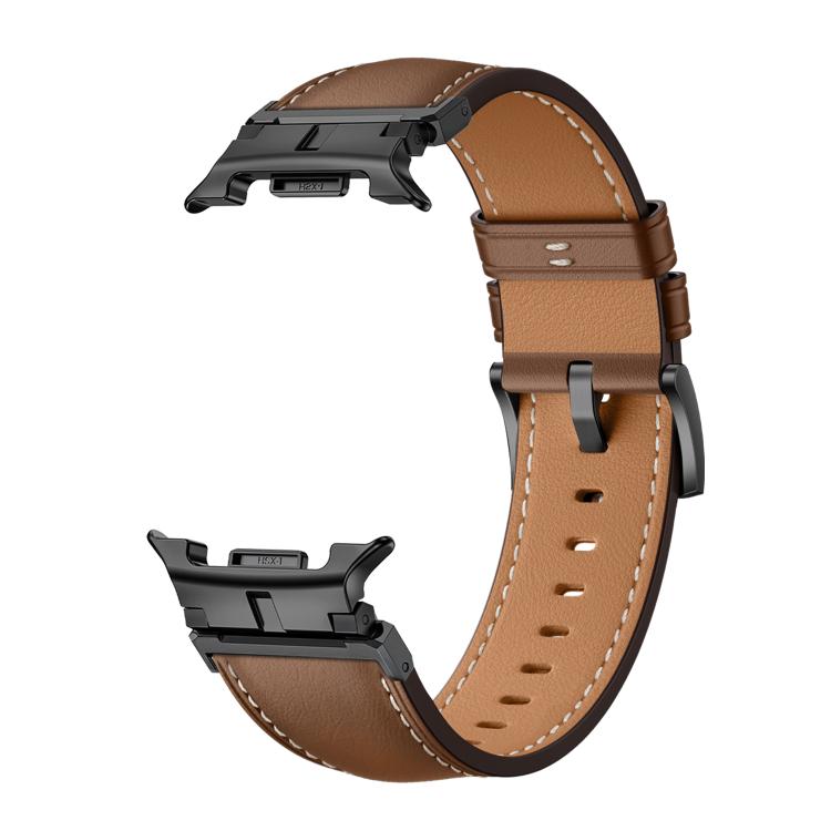 Correa de cuero genuino con conector de cabeza de metal clásico para Samsung Galaxy Watch8/Watch8 (marrón y negro)