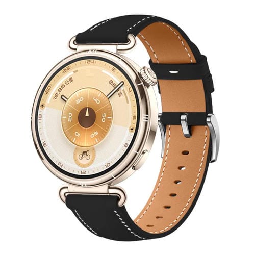 Correa de cuero genuino con hebilla plateada para Huawei Watch GT 6 de 41 mm (negro)