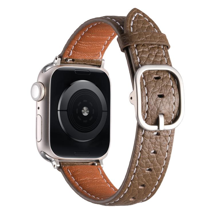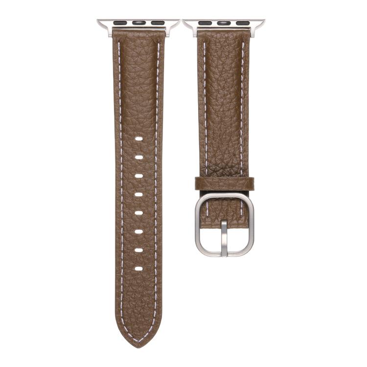 Correa de cuero genuino con textura de lichi y hebilla cuadrada para Apple Watch de 46 mm, 49 mm, 45 mm y 44 mm (marrón)