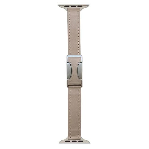 Correa de cuero genuino lisa de 14 mm con hebilla magnética para Apple Watch de 46 mm, 49 mm, 45 mm y 44 mm (color albaricoque).