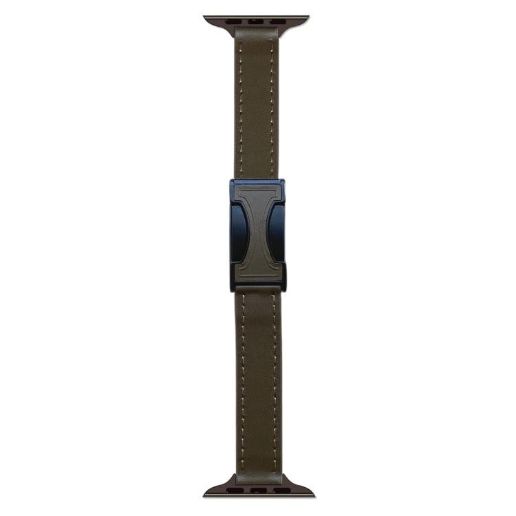 Correa de cuero genuino lisa de 14 mm con hebilla magnética para Apple Watch de 46 mm, 49 mm, 45 mm y 44 mm (marrón oscuro)